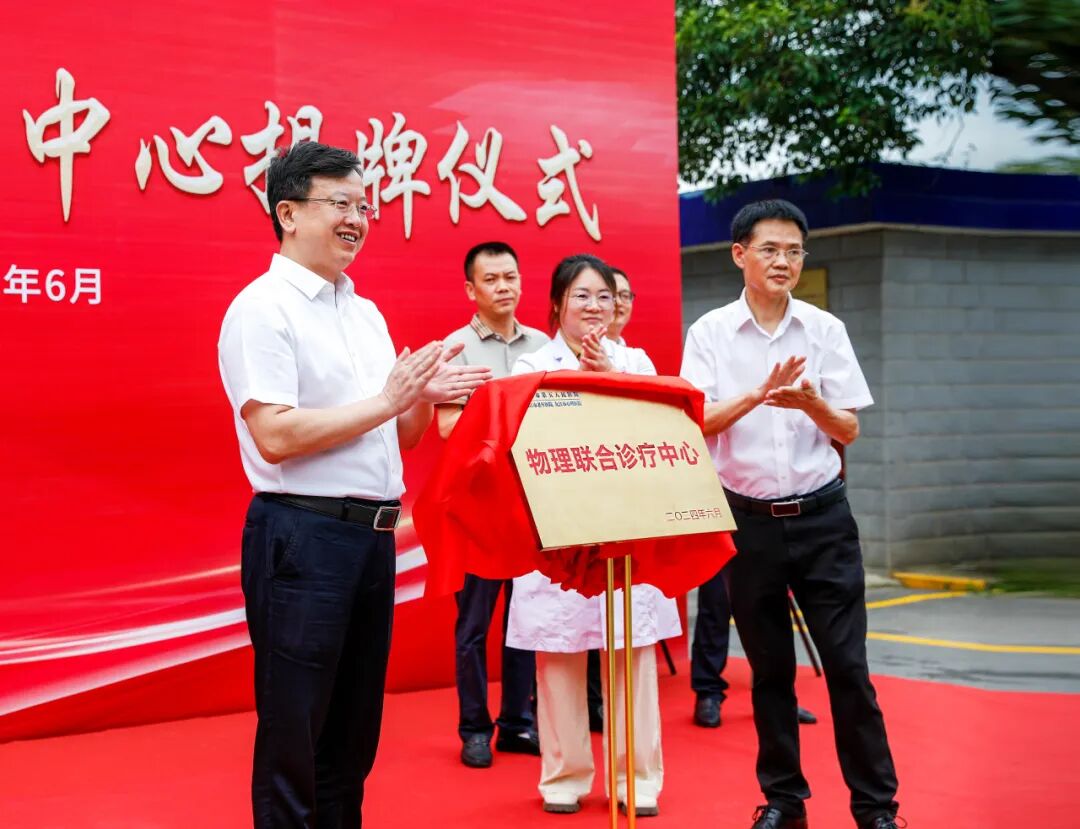 仪式上,副院长叶慧主持仪式并简单介绍物理联合诊疗中心基本情况,党委书记朱晶、副院长黄平共同为物理联合诊疗中心进行揭牌。